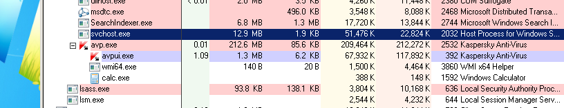 Mesajul de pe Twitter al lui Ormandy a inclus un screenshot care arata procesul calculatorului din Windows (calc.exe) ruland sub procesul deschis de antivirusul Kaspersky.